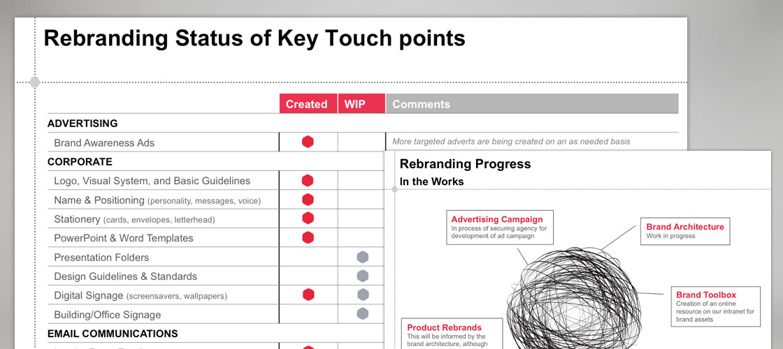 Some key areas of focus included: Internally - weekly Q&A calls on rollout strategy, Branding Center where employees can find comprehensive resources/tools on all facets of new brand, and redesign of intranet, newsletters and publications. Externally - rebranded marketing materials, products, event setups, website, and sales tools.